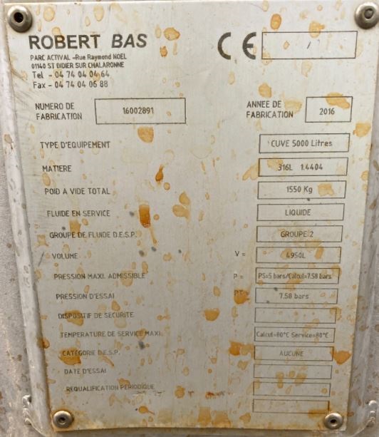 | Type | Structure de cuve INOX 316 |