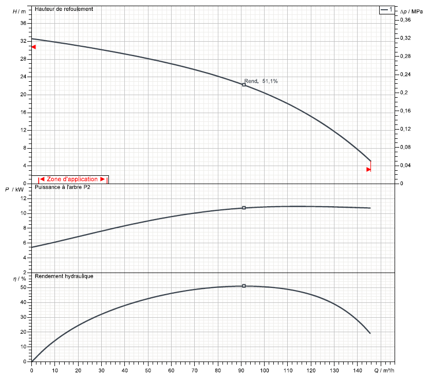 | Point de fonctionnement nominal | 92 m3/h 22 m |