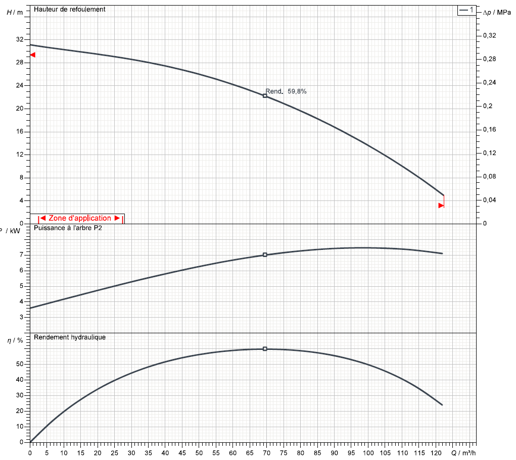 | Point de fonctionnement nominal | 69 m3/h 22 m |