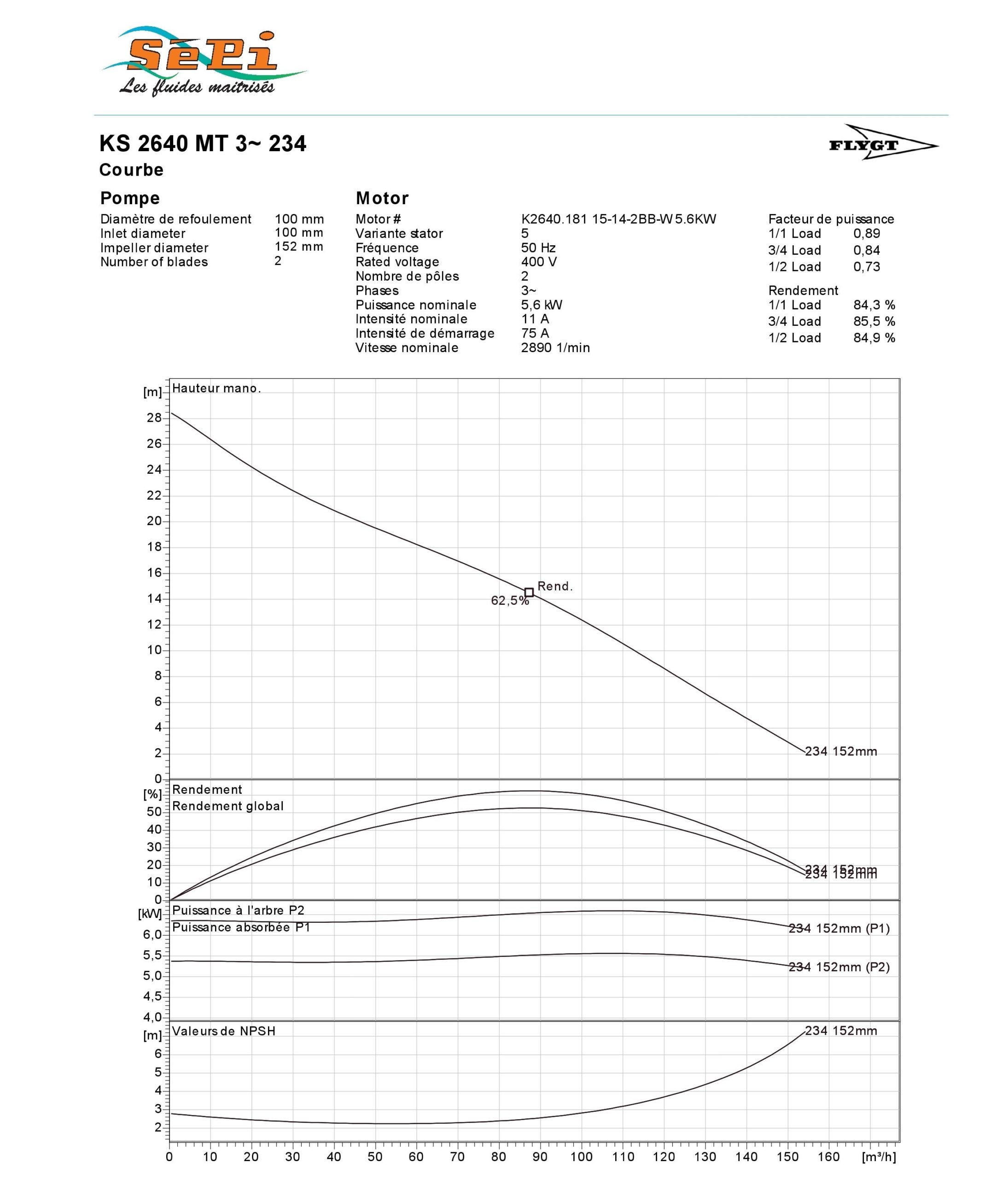 | Point de fonctionnement nominal | 87 m3/h 14,5 m |